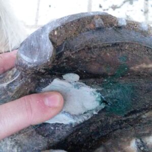 2. Der Abheilungsprozess kann durch die Inhaltsstoffe wie Zink und Propolis unterstützt werden. Der „schwammige“ Strahlbereich wird wieder stabiler, ohne jedoch den Huf an sich auszutrocknen. Schon nach ein paar regelmäßigen Anwendungen vergeht der faulige Geruch.